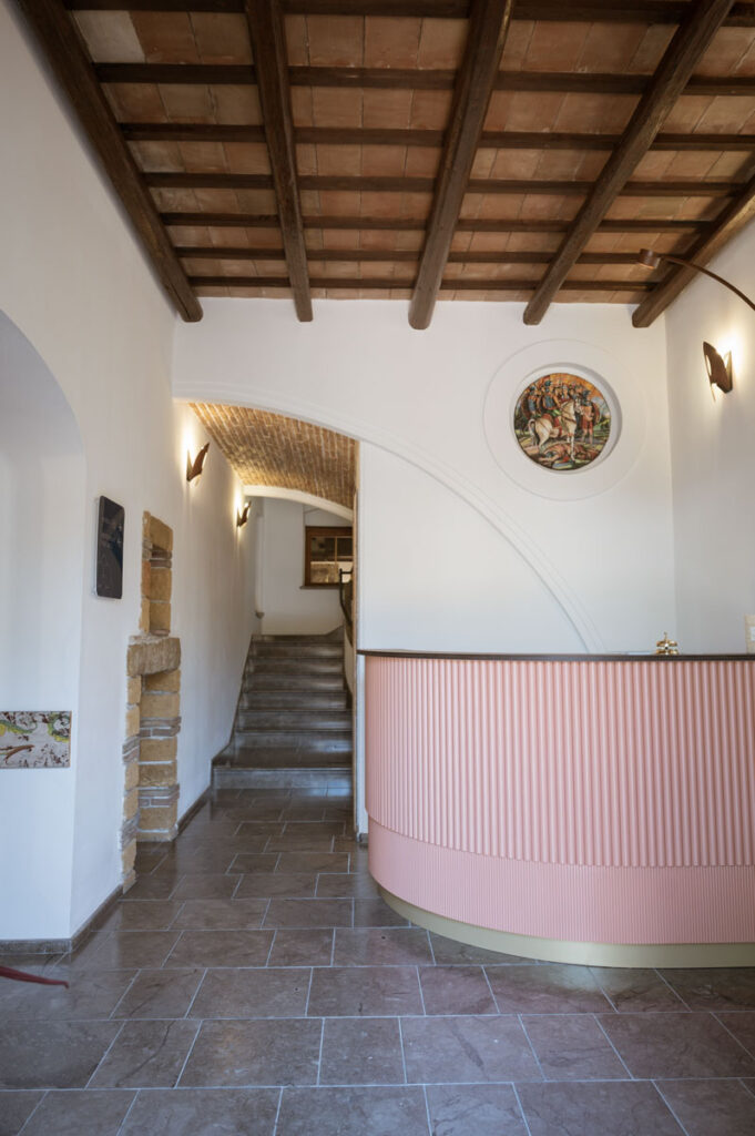 Si articola su tre differenti livelli. Al piano terra si trovano la hall, la sala ristorante e il bar in stile rustico mediterraneo caratterizzati dalla presenza dell’antico torchio e della macina ottocentesca.
